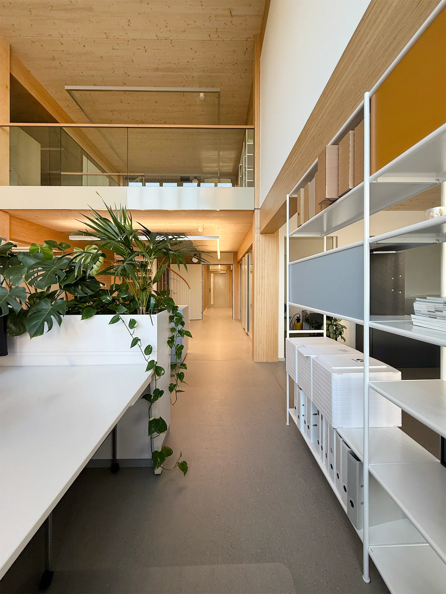 Transparenz, Licht und natürliche Materialien erzeugen eine Atmosphäre, die den Arbeitsalltag erleichtert und gleichzeitig die Stärke der Marke spürbar macht. Eine ruhige Farbpalette aus Naturtönen und gezielten Markenakzenten unterstützt diese Klarheit.